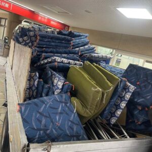 A. いいえ、切断不要です!そのまま回収します。 自治体の燃えるゴミに出す場合は「細かく裁断する」必要がありますが、福岡片付け隊にご依頼いただく場合は、長いまま・丸めたままでOKです。 重たくて運べない場合もスタッフが部屋から運び出します。