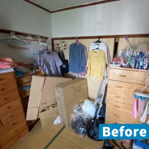 最後に、お部屋に残っていた小さな雑貨や細々とした不用品を袋や箱に詰めて回収しました。スペースを確保しながら順序良く運び出すことで、予定通りの40分ですべての作業が完了しました。